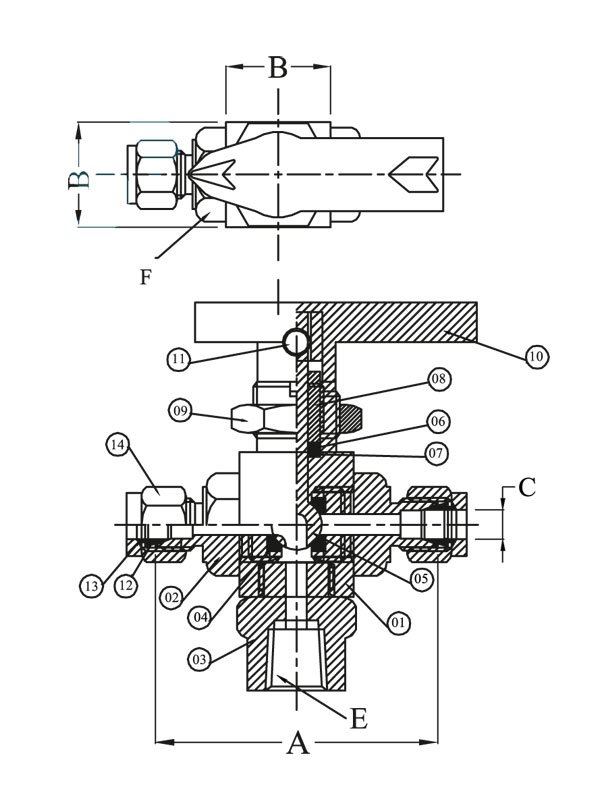 3 Way Ball Valve - Model No. GV-156-BV-3W
