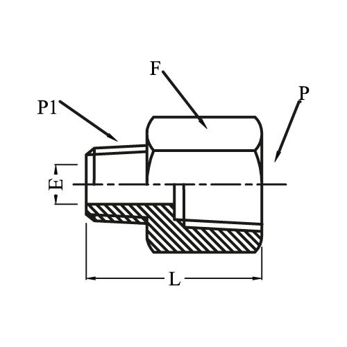 Model No.  P Female NPT Size P1 Male NPT Size L E F A/F