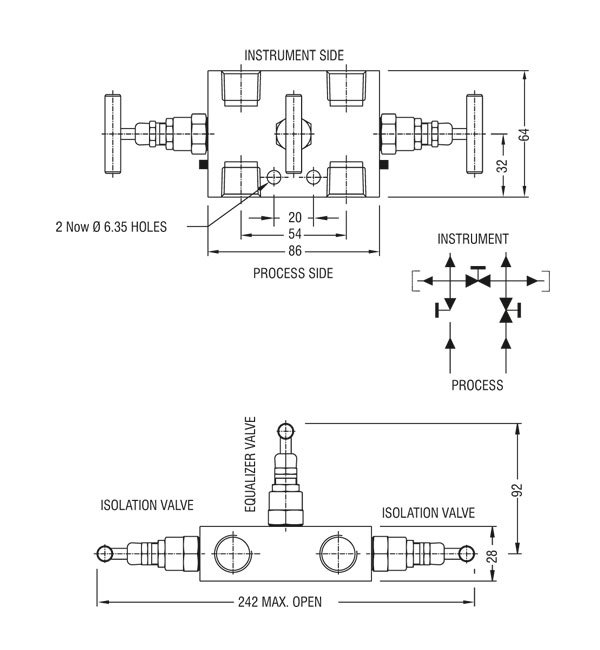 GV-111-3VMR, Three Valve Manifold Remote Mount (Pipe x Pipe) - Manifold Valves
